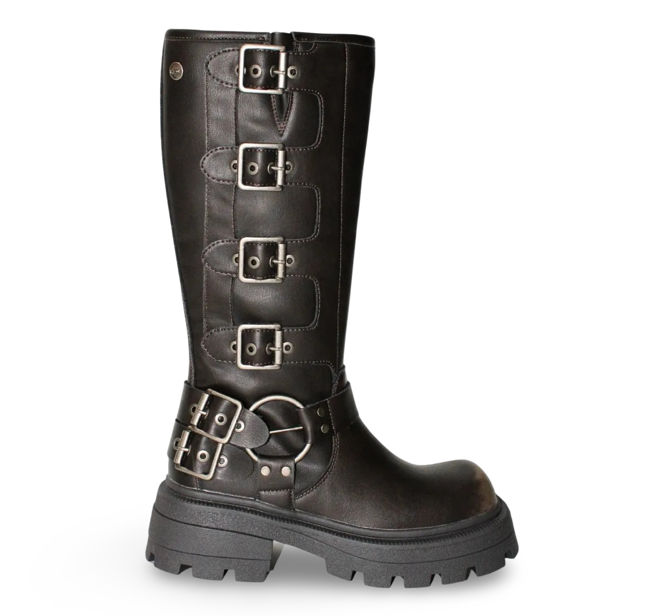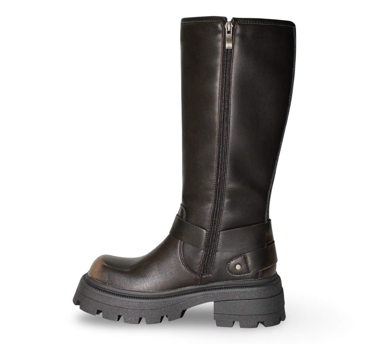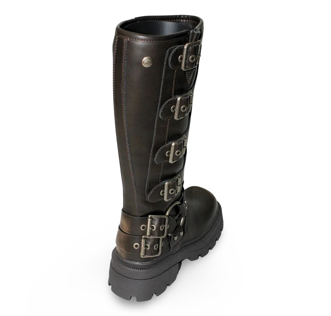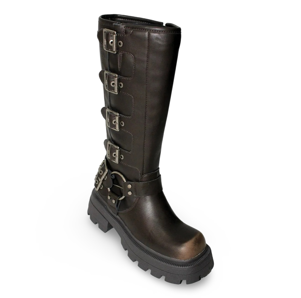 Botas Altas Eco Cuero Café Ahumado de Plataforma con Hebillas Mujer CM2408HCF