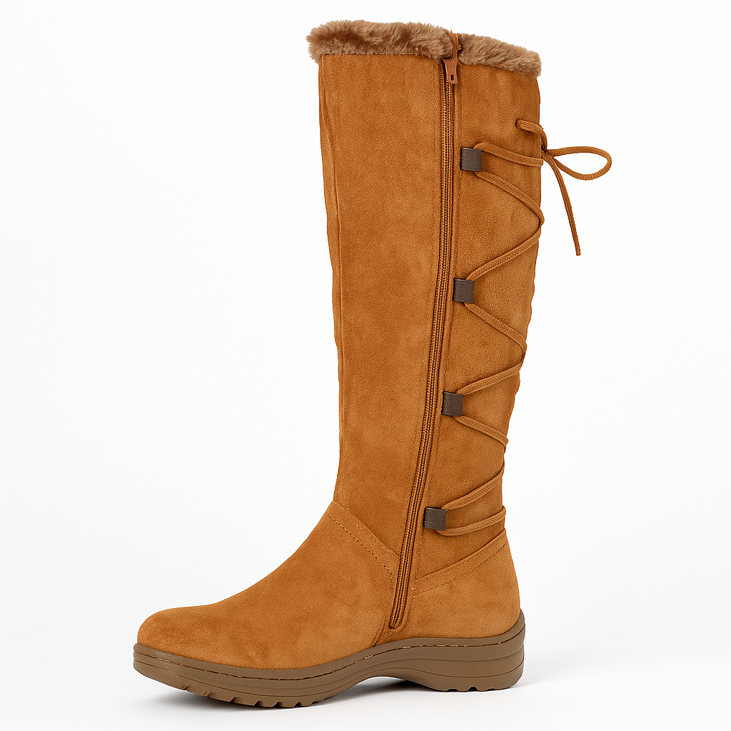 Botas en Gamuza Camel y Chiporro con Amarre Posterior 2201CM