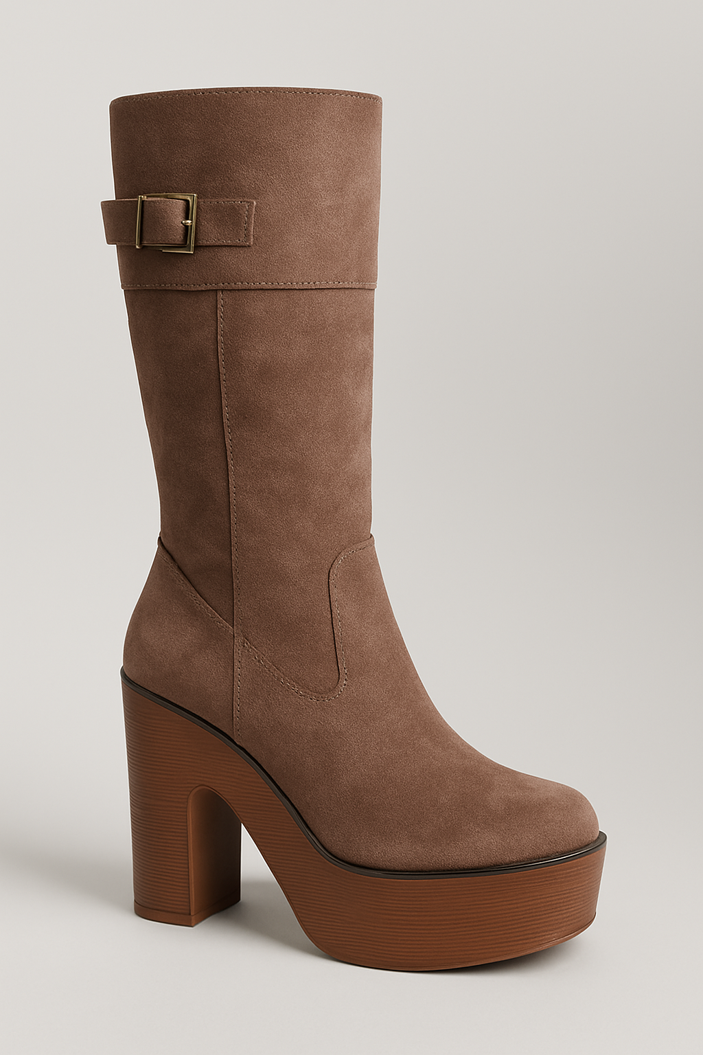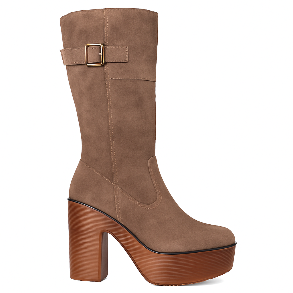 Botas en Gamuza Khaki con Taco Medio y Plataforma 2203KH