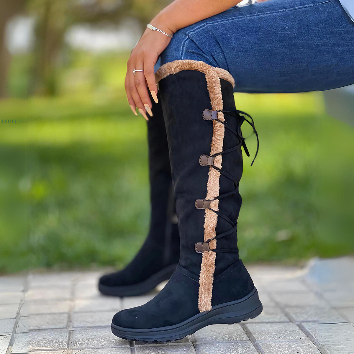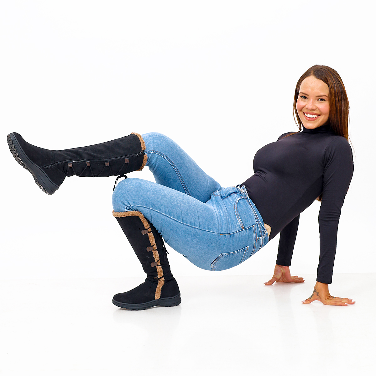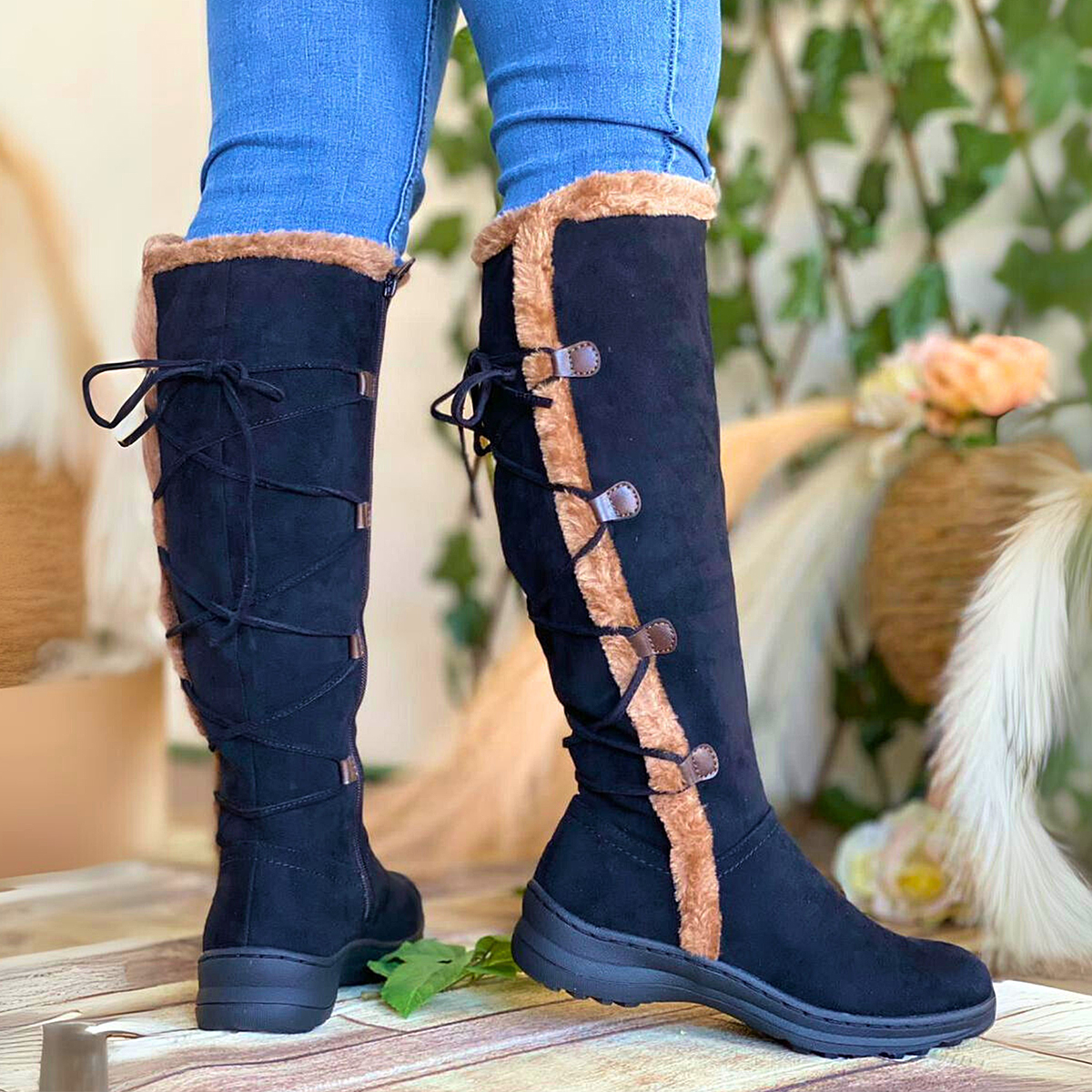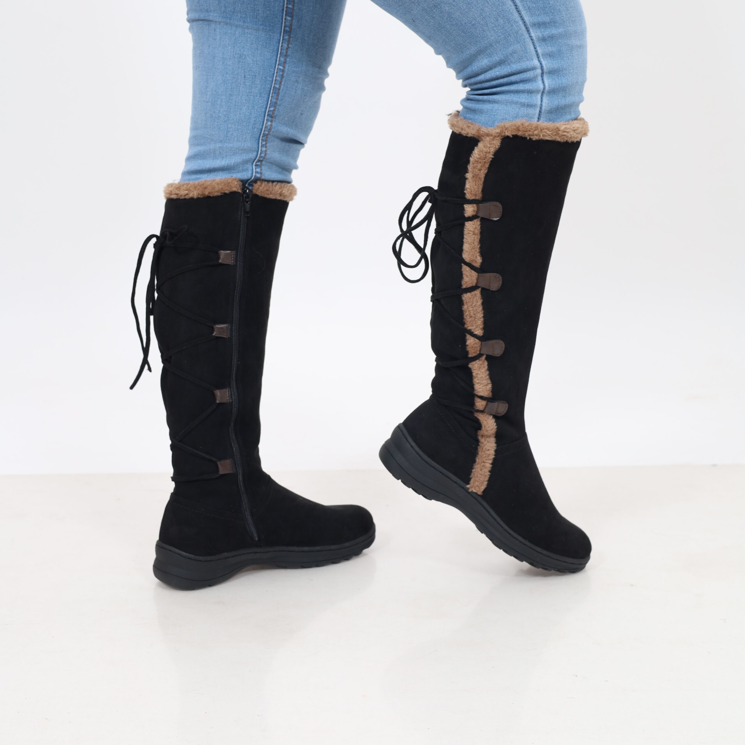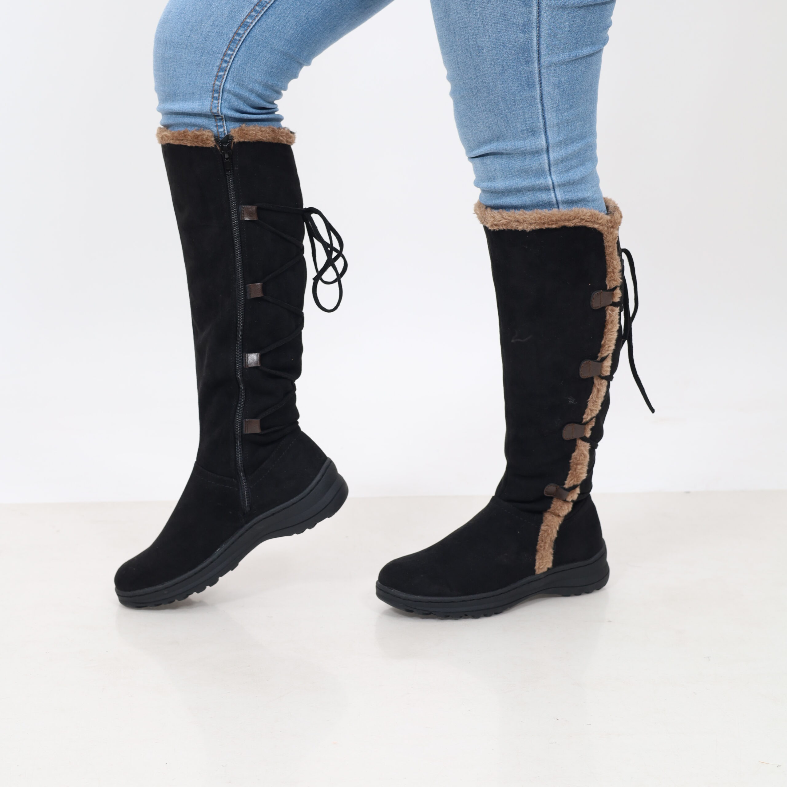 Botas en Gamuza Negra y Chiporro con Amarre Posterior 2201NG