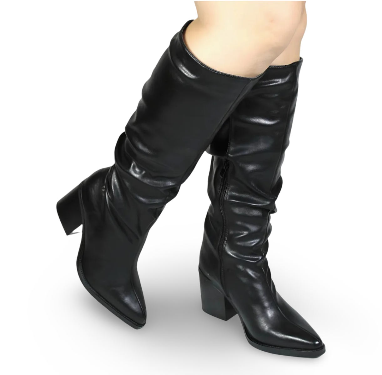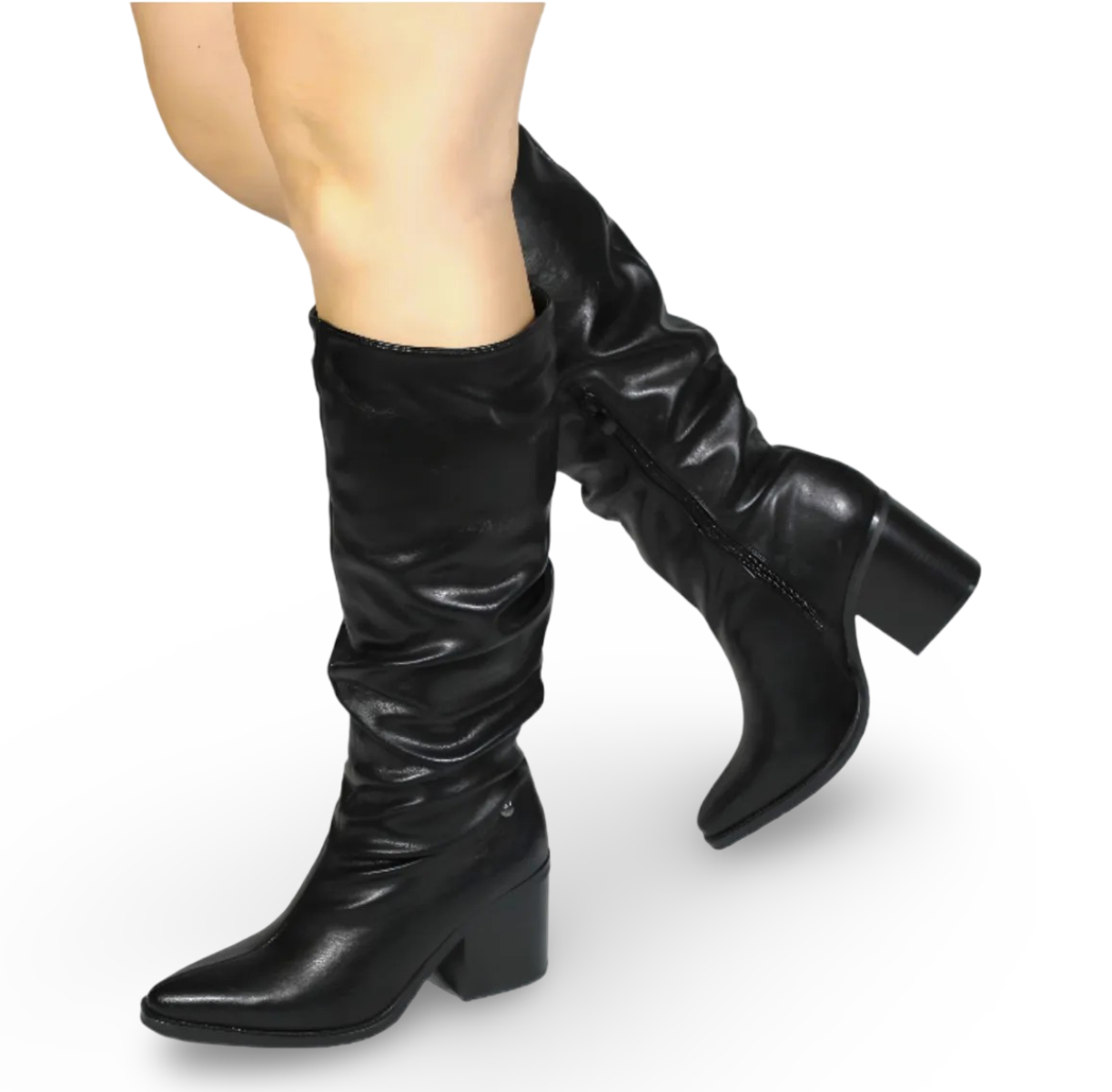 Botas Largas de Eco Cuero Arrugado con Taco Mujer RT26379-1NG