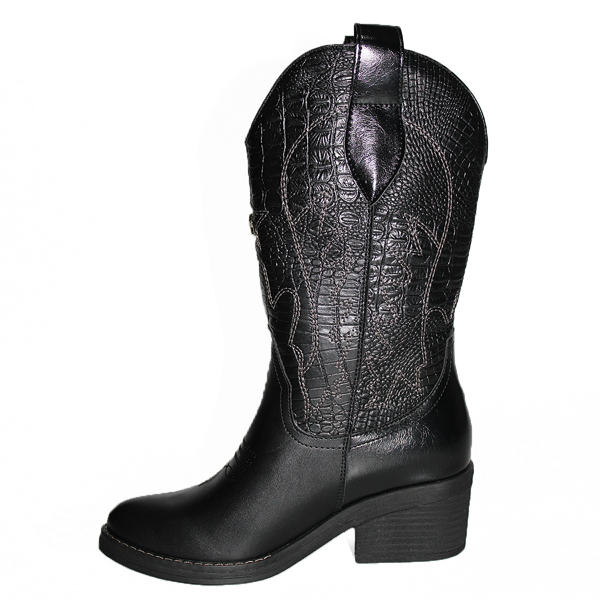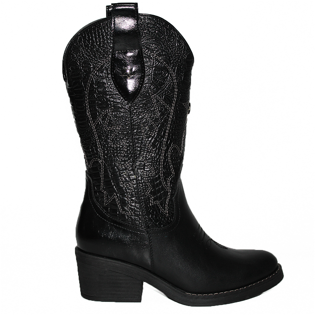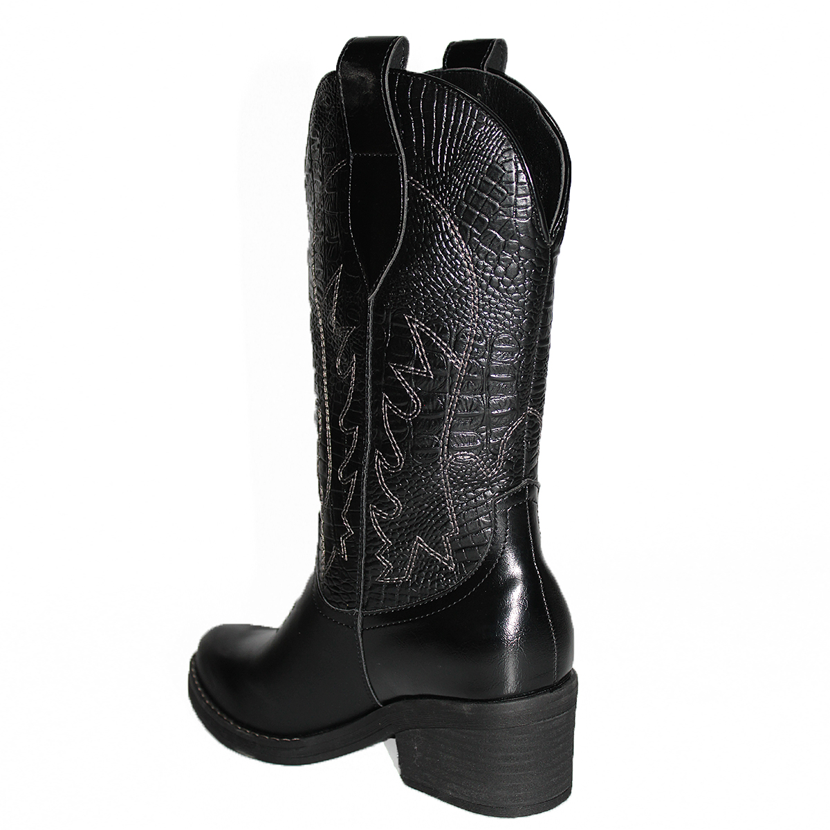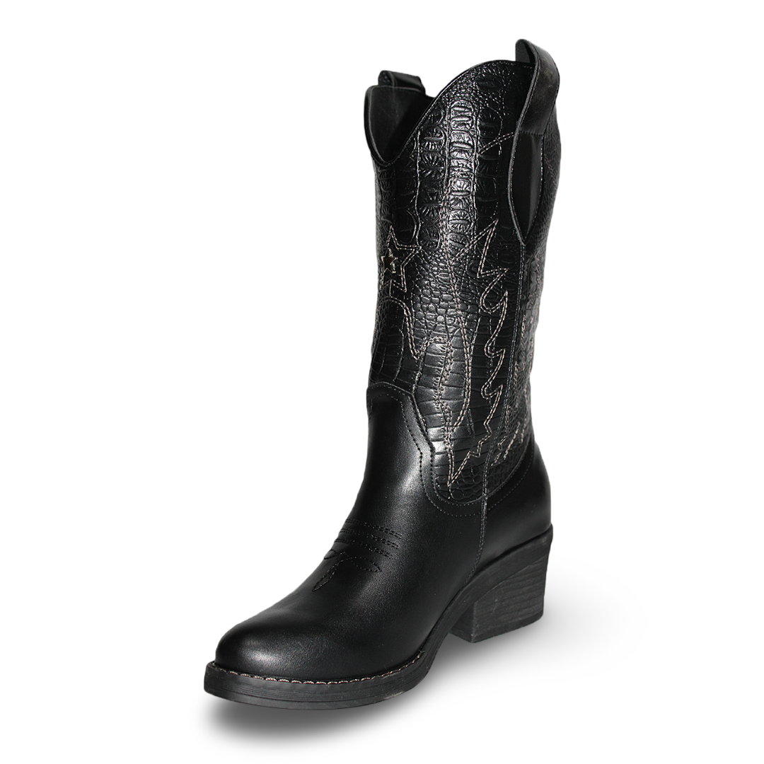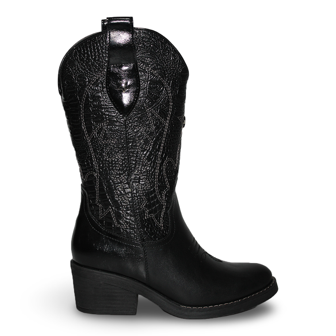 Botas Vaqueras con Diseño en Costura y Taco Medio Livianas C2307NG
