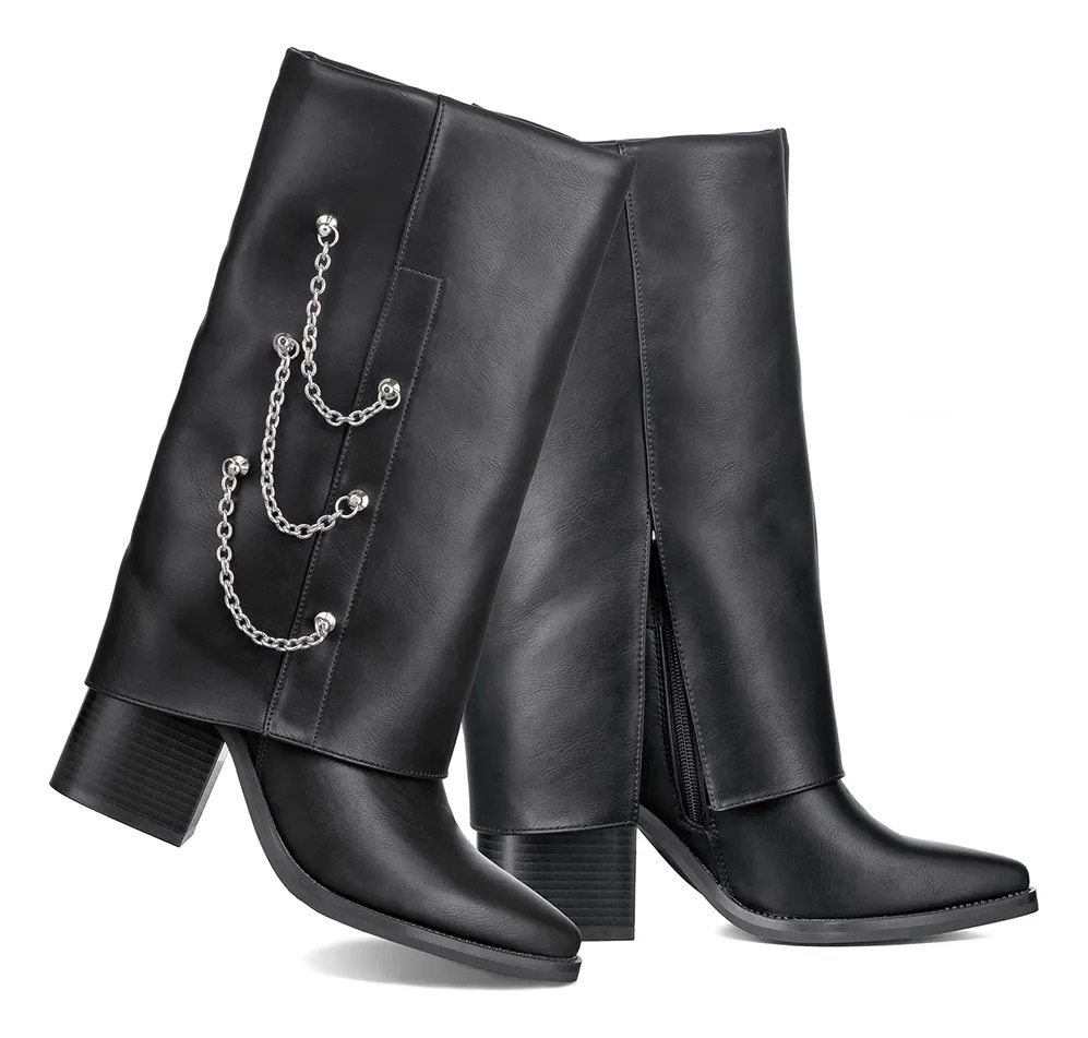 Sé el primero en valorar “Botas Negras Anchas con Cadenillas de Lujo y Taco Medio 2627NG”