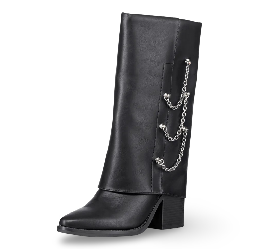 Botas Negras Anchas con Cadenillas de Lujo y Taco Medio 2627NG