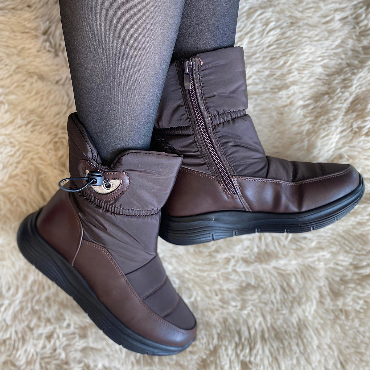 Botín Térmico con Chiporro Café de Ajuste Elástico Lateral QM2311CF