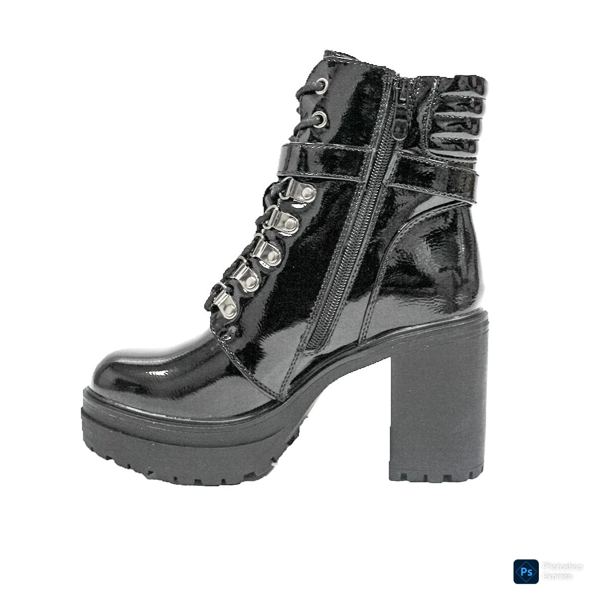 Botines en Charol Negro con Taco Alto Mujer 24-33ANG