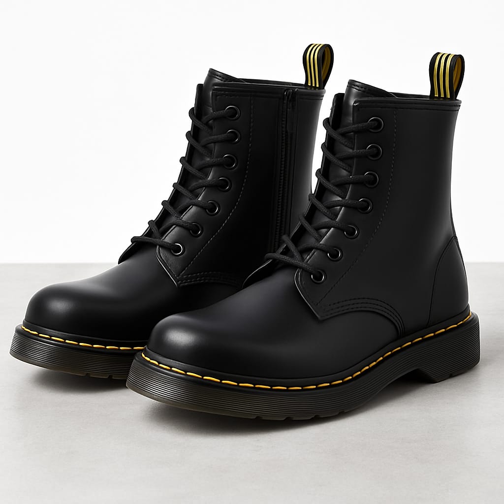 Botines Estilo Dr. Martens Eco Cuero Negro N01NG