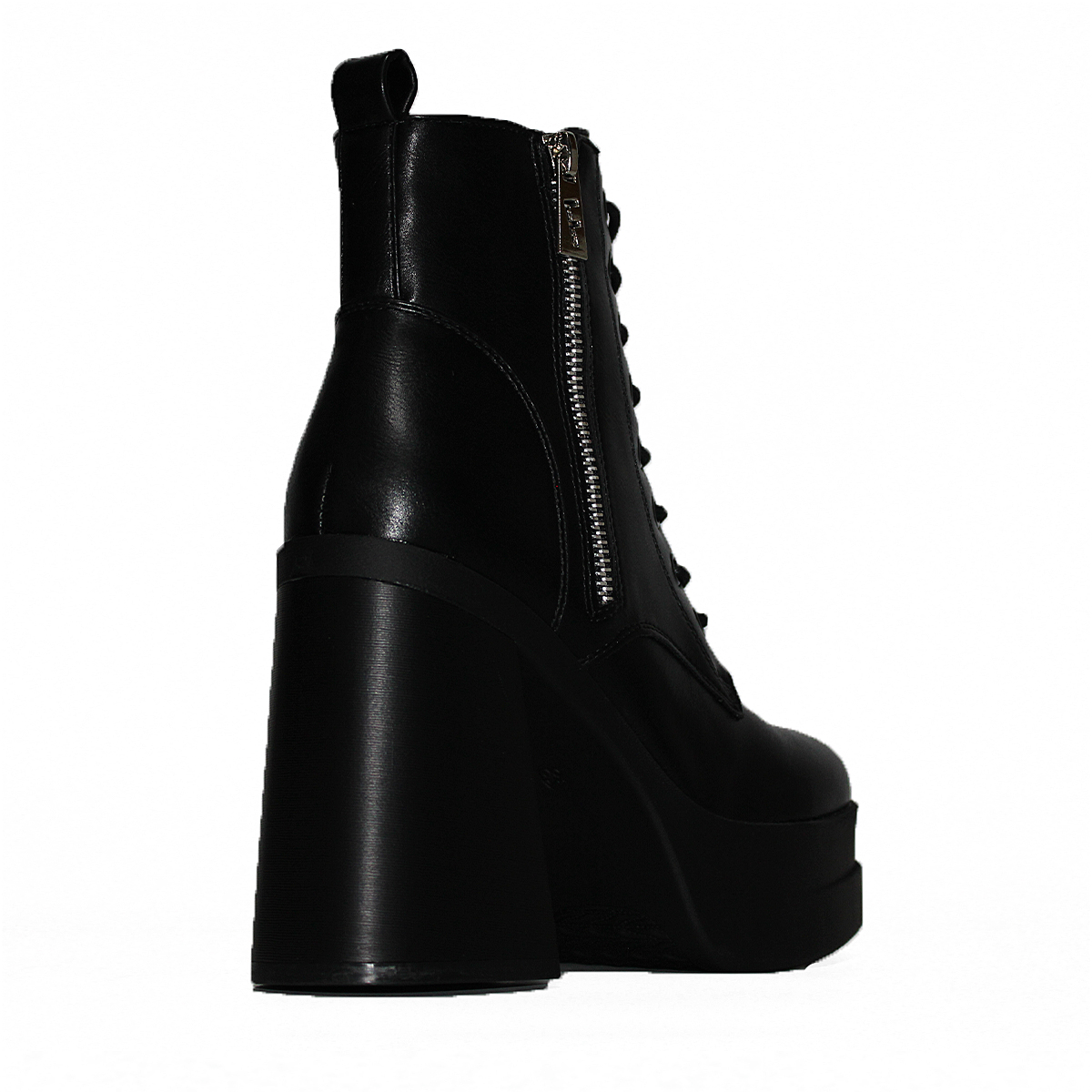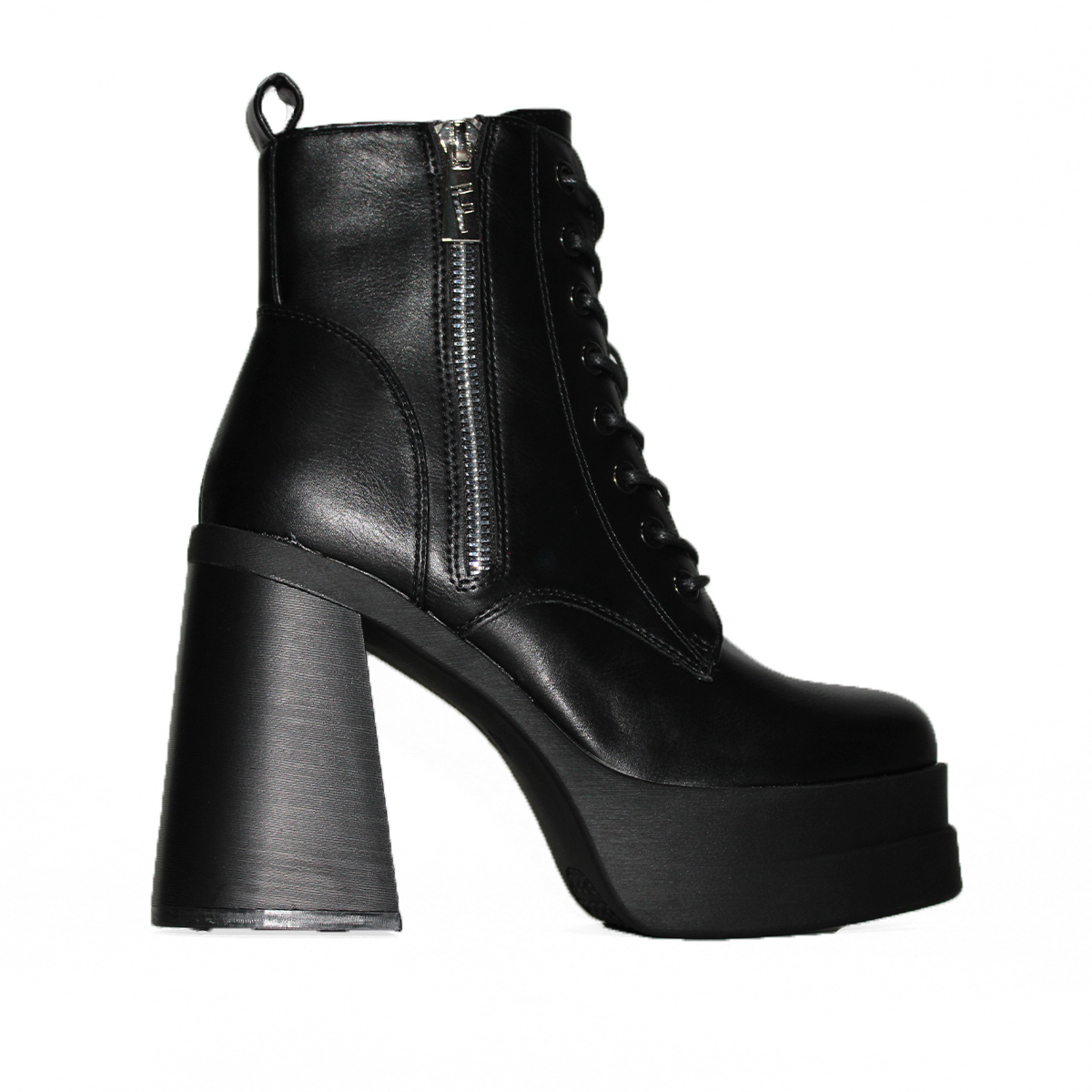 Botines en Eco Cuero Negro con Taco Alto Cordones Mujer 2396NG