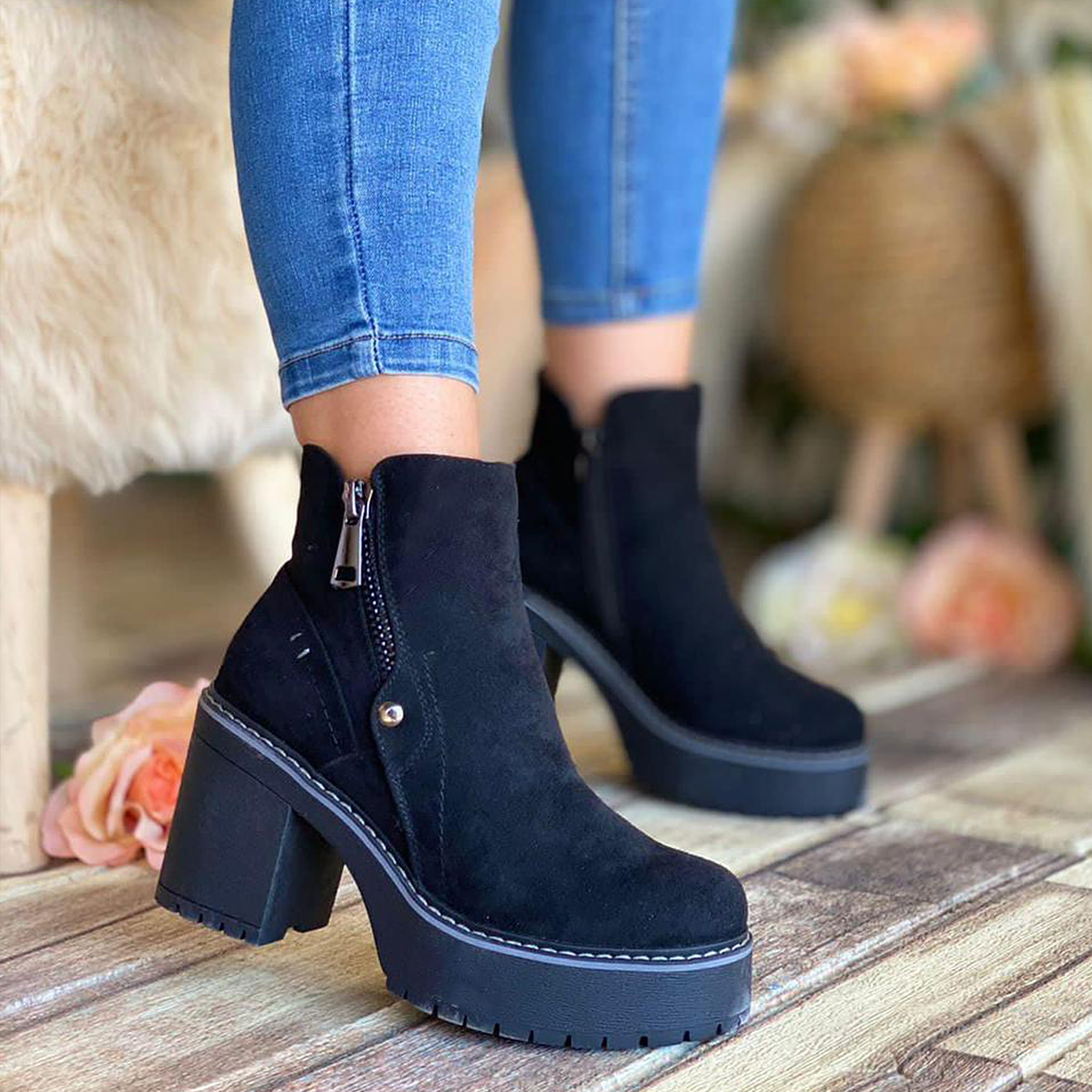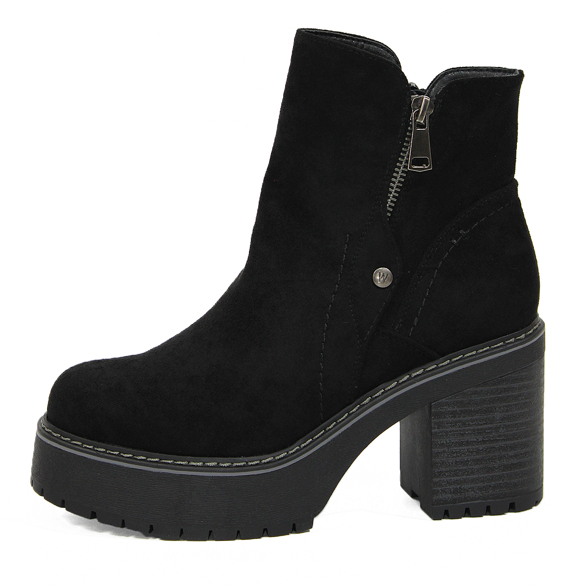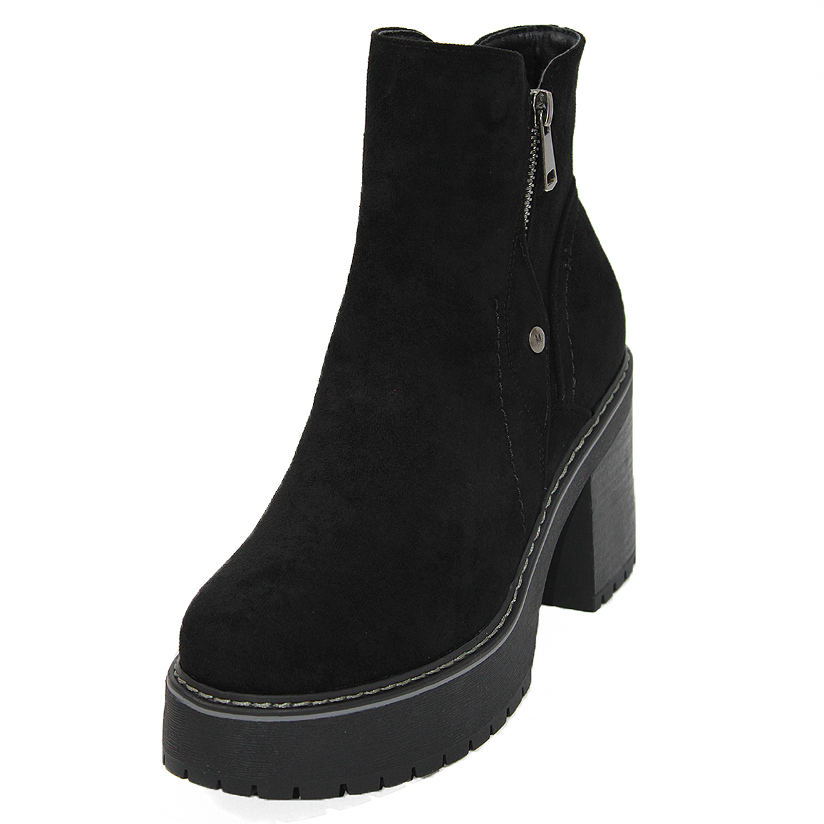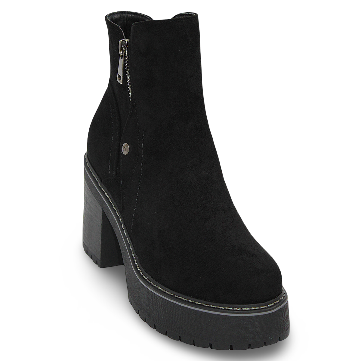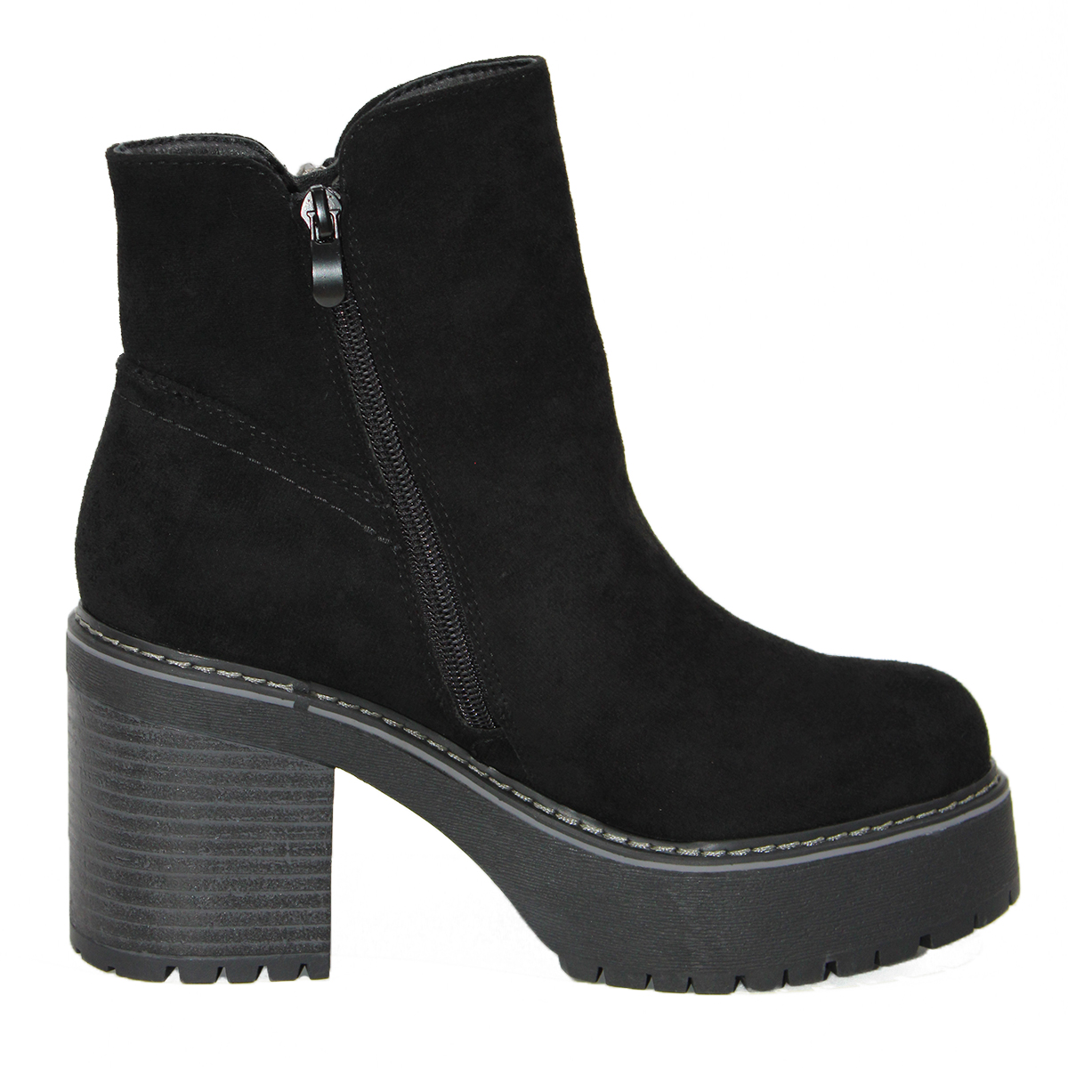 Botines en Gamuza Negra con Taco Medio y Cremallera 2205NG
