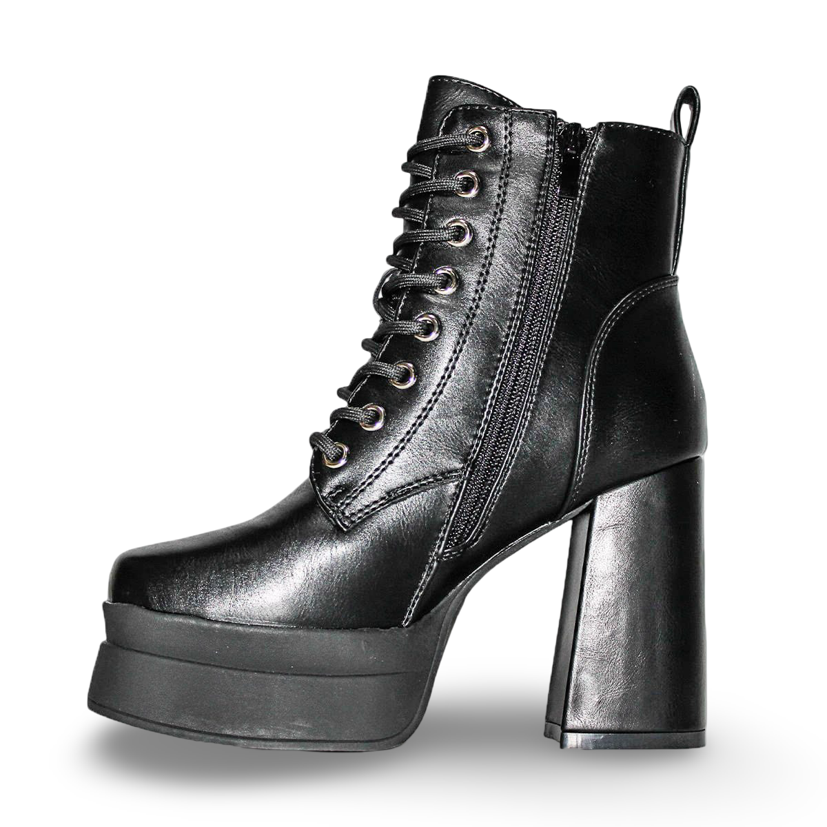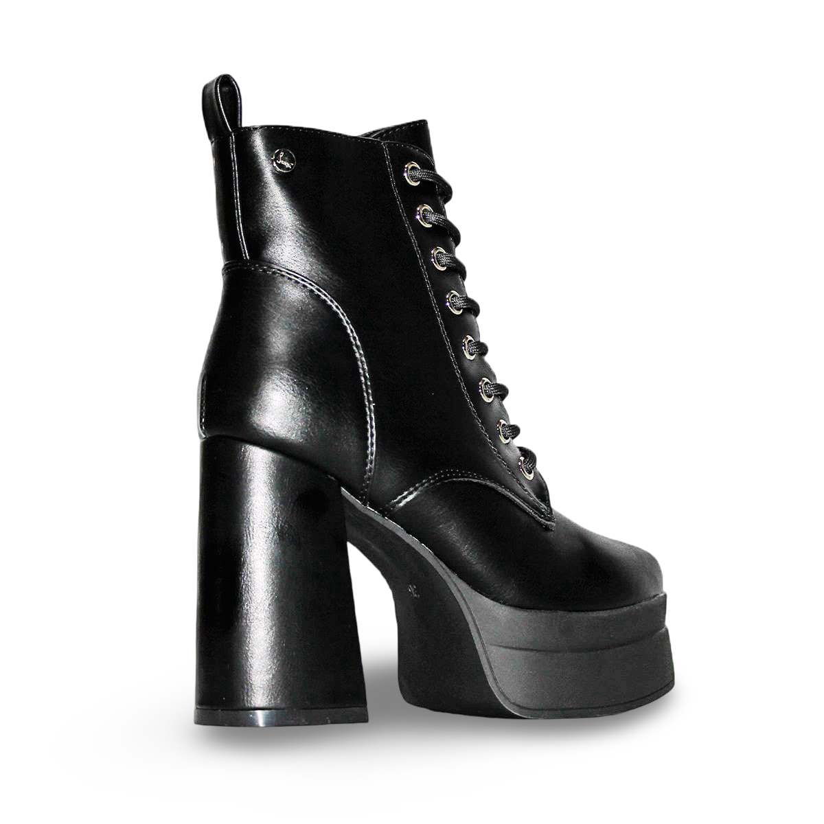 Botines Negros de Taco Alto y Plataforma con Cordones 2520NG