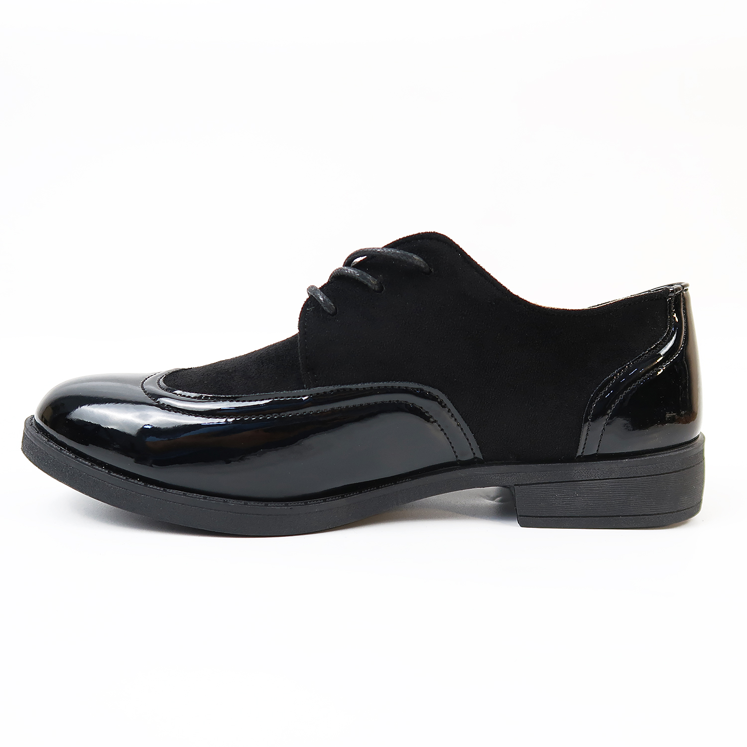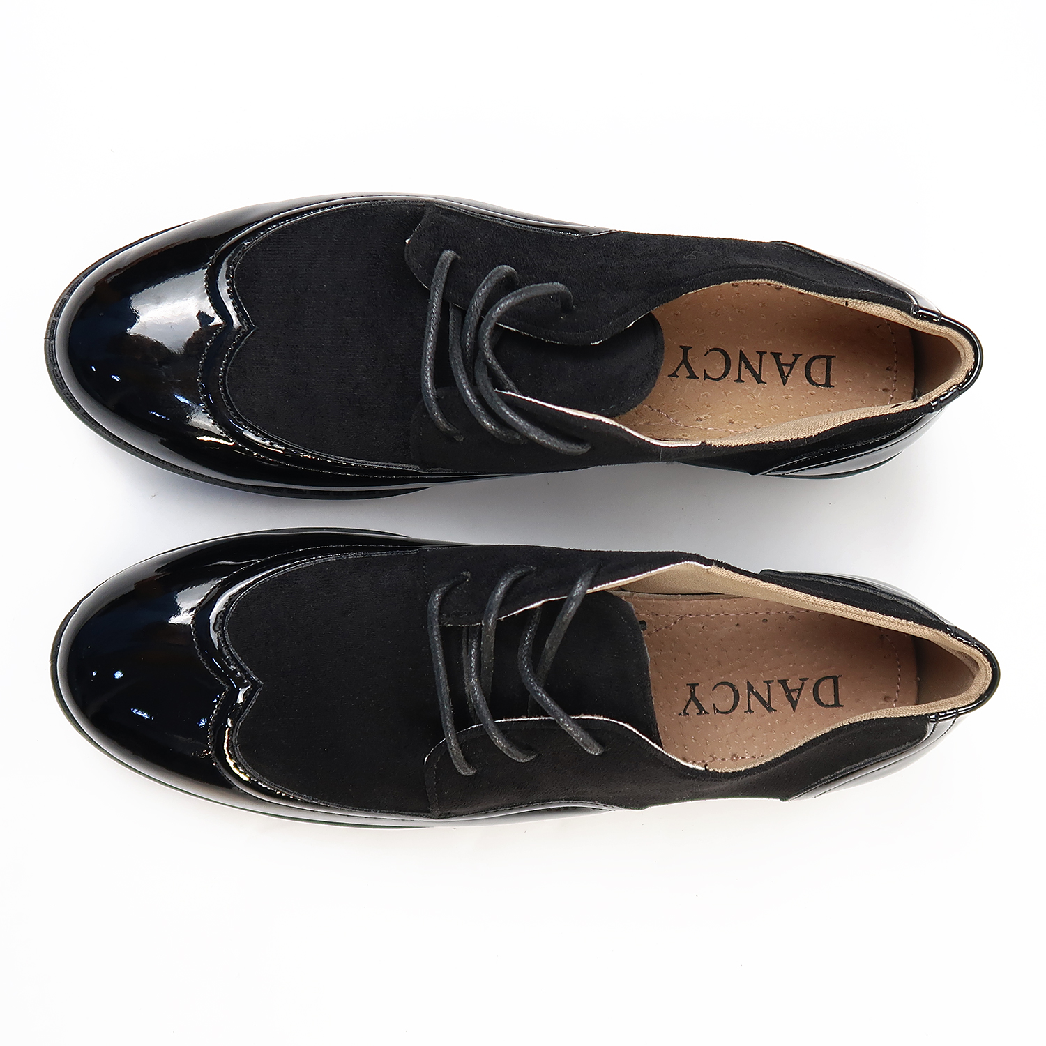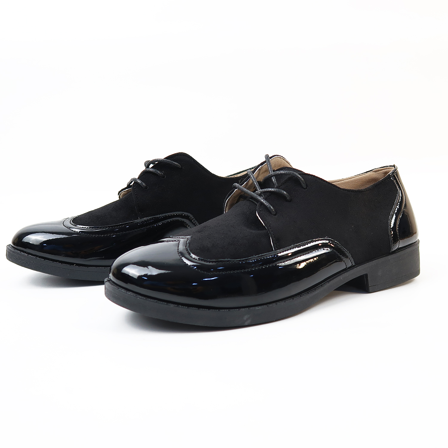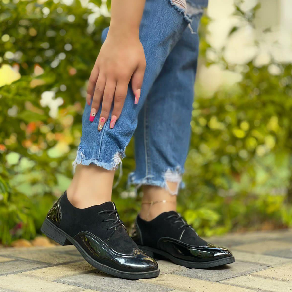 Mocasines Balerinas en Charol y Gamuza Negro con Cordones 1022NG
